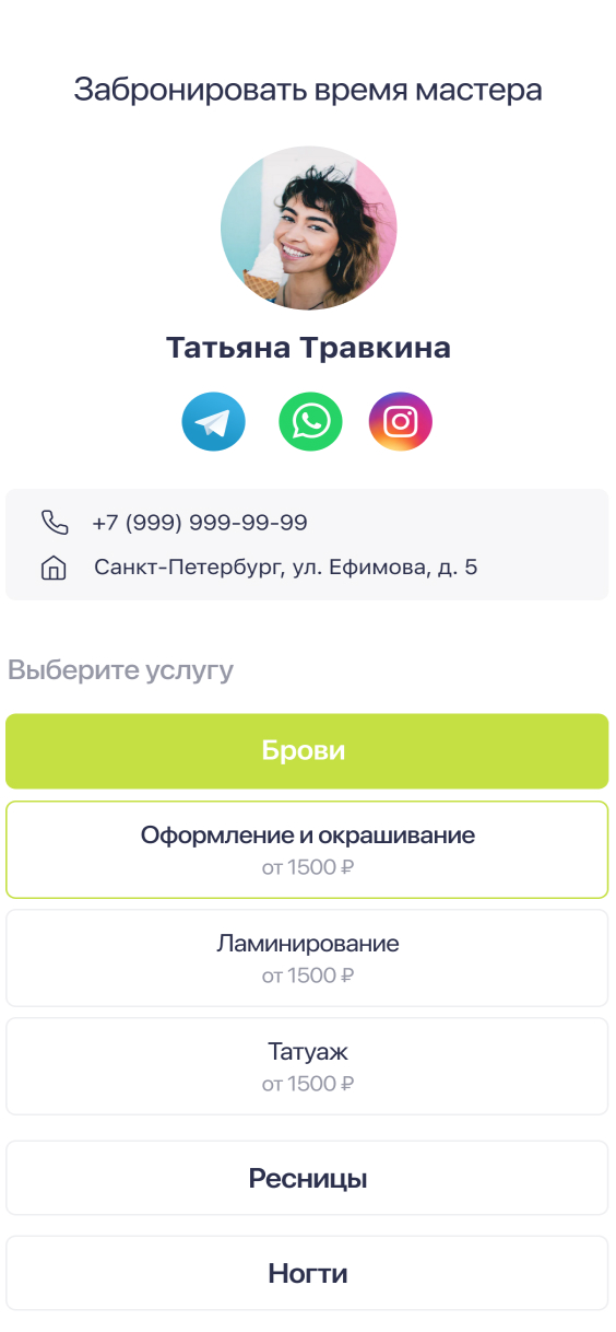 При регистрации на платформе мастер может максимально наполнить профиль: показать примеры работ, указать соцсети и уточнить свой адрес на карте. Это помогает клиентам быстро выбрать подходящего мастера.