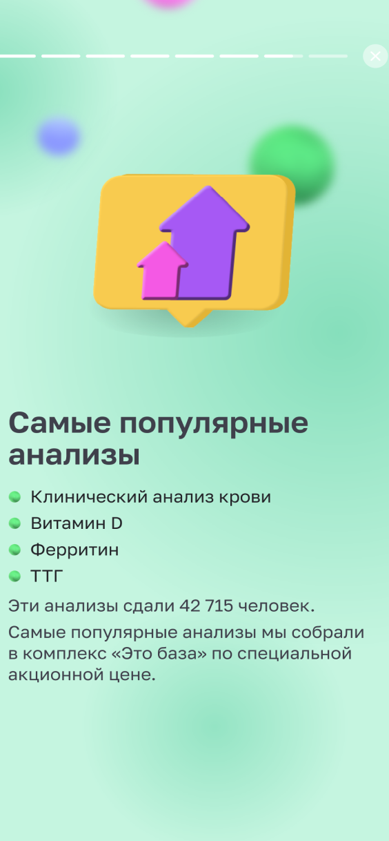 Внедрили широкий функционал с индивидуальным подбором анализов для каждого пользователя.