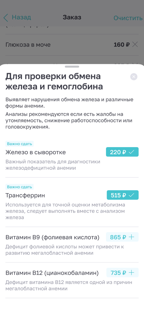 А еще мы добавили в корзину персональные рекомендации, которые подбираются под различные виды анализов и диагнозов. Это помогло увеличить средний чек в 1,5 раза!