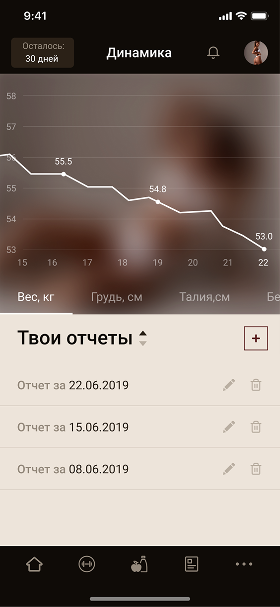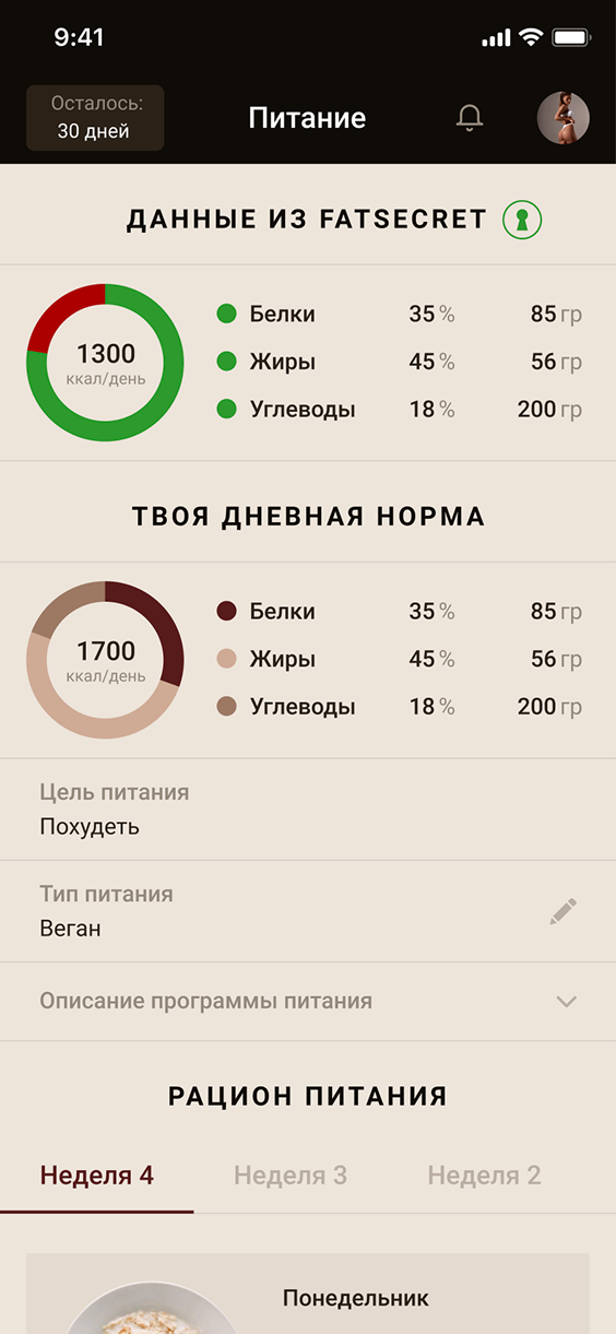 Создать мобильное приложение, которое станет основой онлайн-школы Анастасии Мироновой. Продукт должен был объединить тренировки, питание и коммуникации в одном интерфейсе, быть удобным для ежедневного использования и легко масштабироваться. Основные цели — повысить вовлеченность аудитории, централизовать работу с контентом и увеличить монетизацию за счёт собственных цифровых каналов.